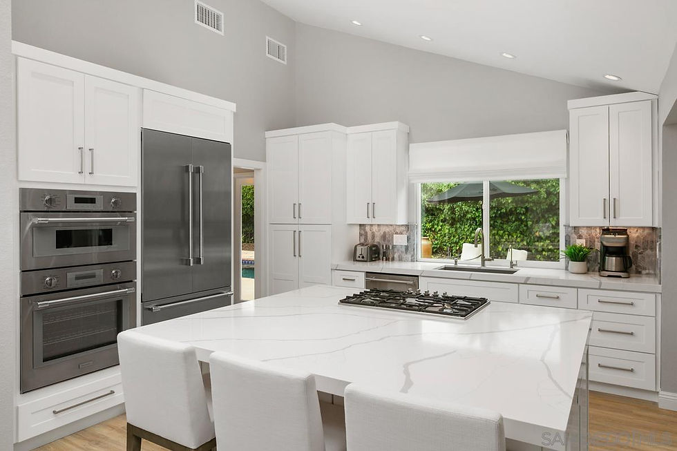 Welcome to your dream, single-level executive home in the highly coveted community of Lomas Serenas. This meticulously maintained residence offers a serene and picturesque backdrop, boasting stunning views of the majestic Bernardo Mountain and Lake Hodges when full. As you approach, you’ll be greeted by a beautifully paved driveway. With vaulted ceilings, this home is designed to flood every room with an abundance of natural light. The heart of the home is the fully remodeled Chef's kitchen.